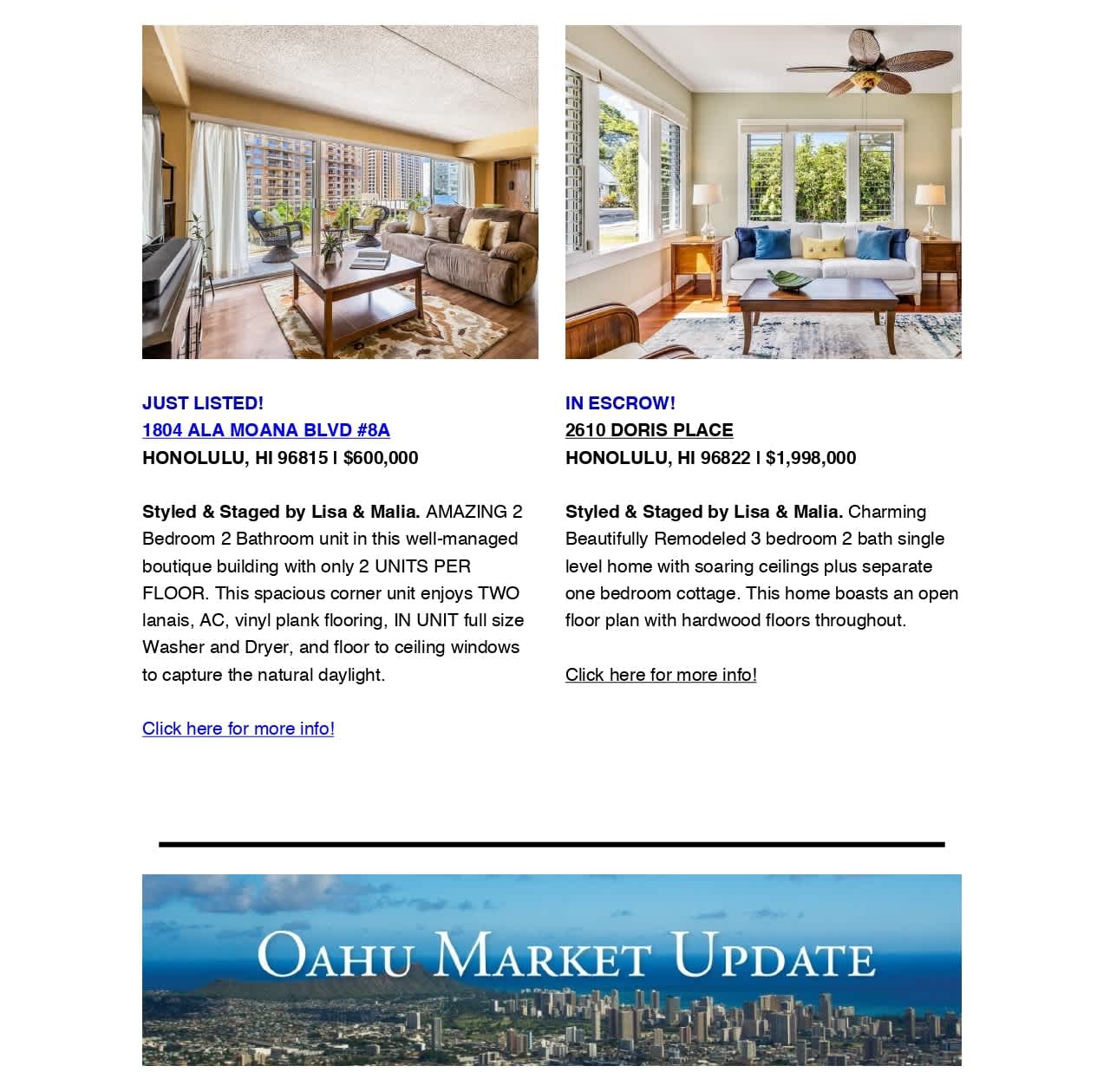 Determine the present value of your home, obtain current market trends, and let our market knowledge and negotiating skills go to work for you!