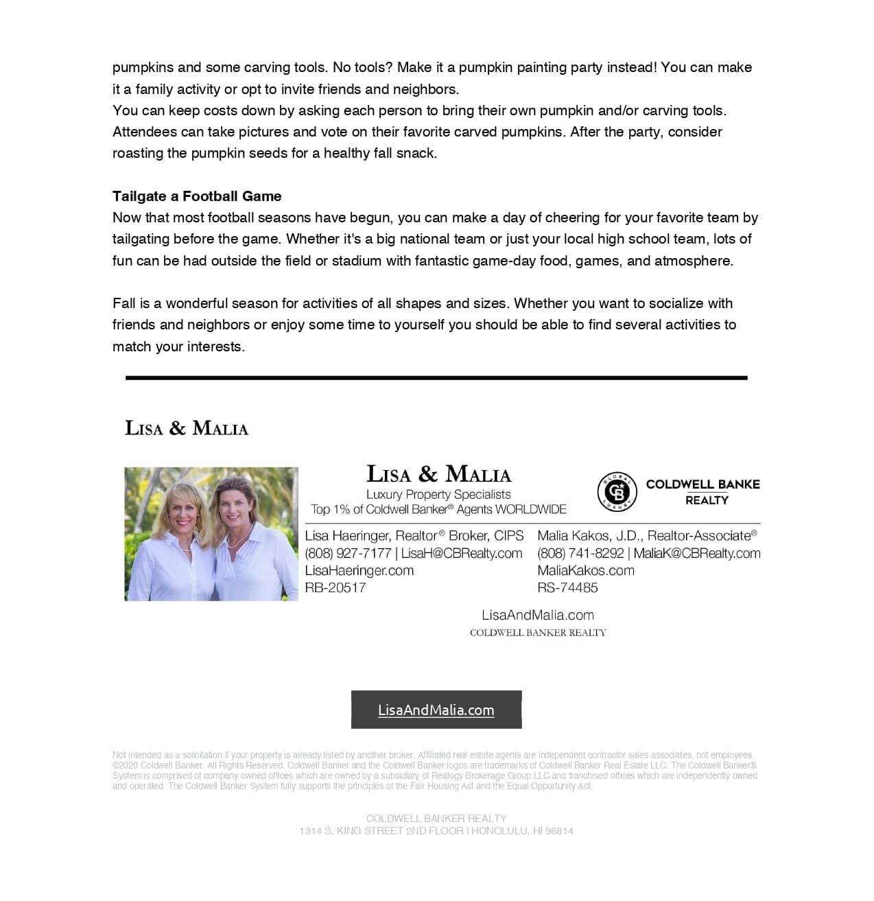Engage in the Lisa & Malia Experience